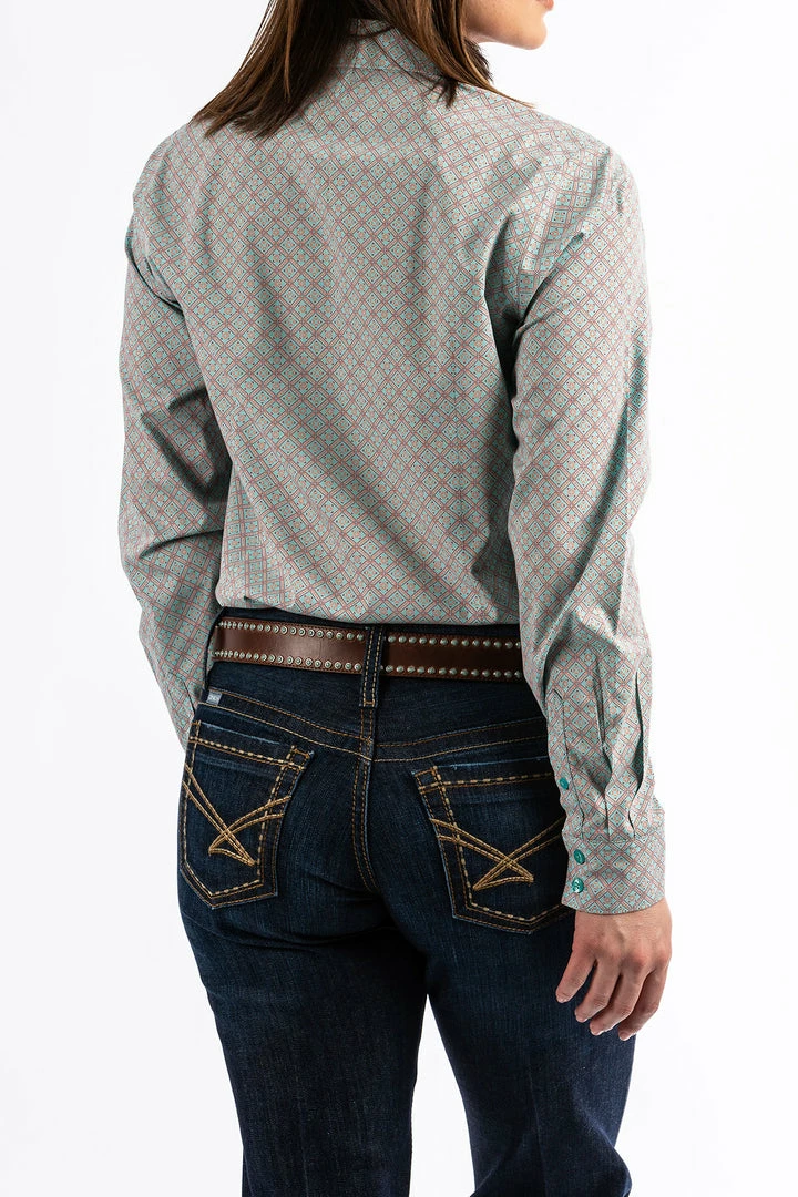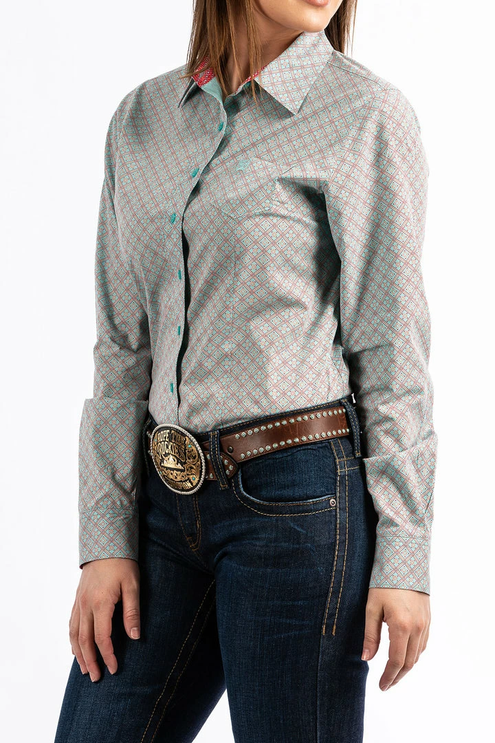 Cinch Womens Aqua Print Western Shirt Women’s