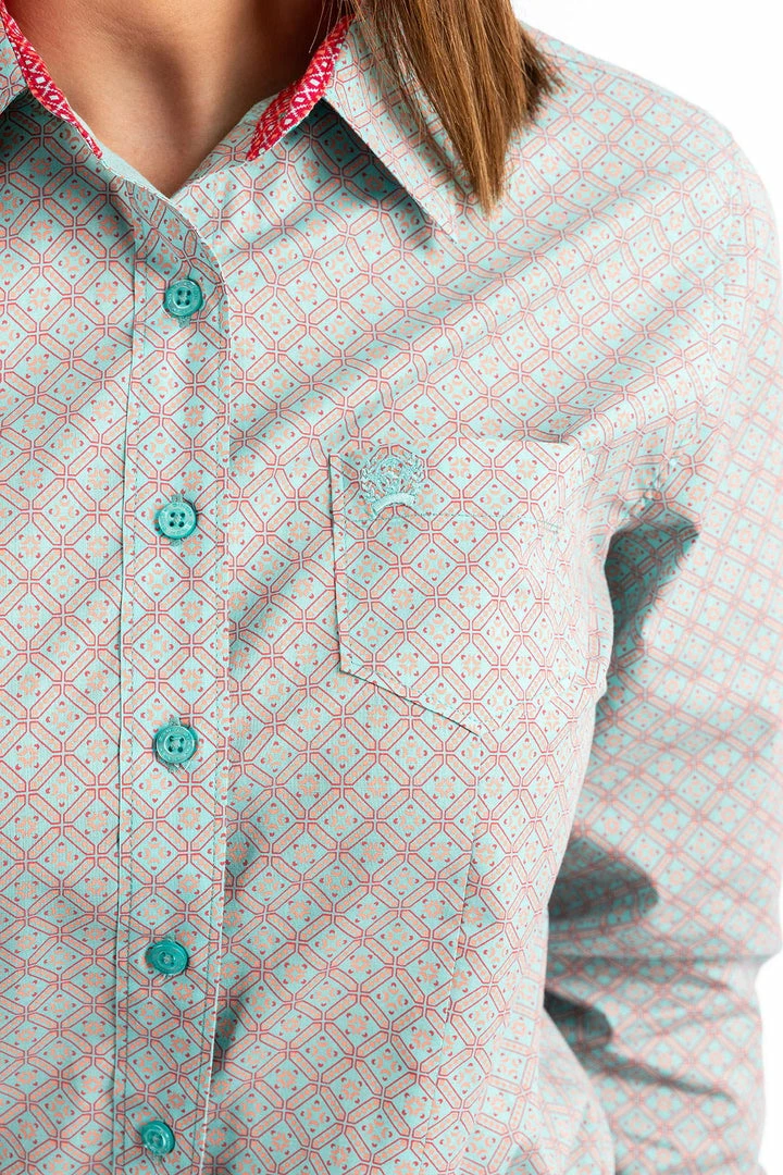 Cinch Womens Aqua Print Western Shirt Women's