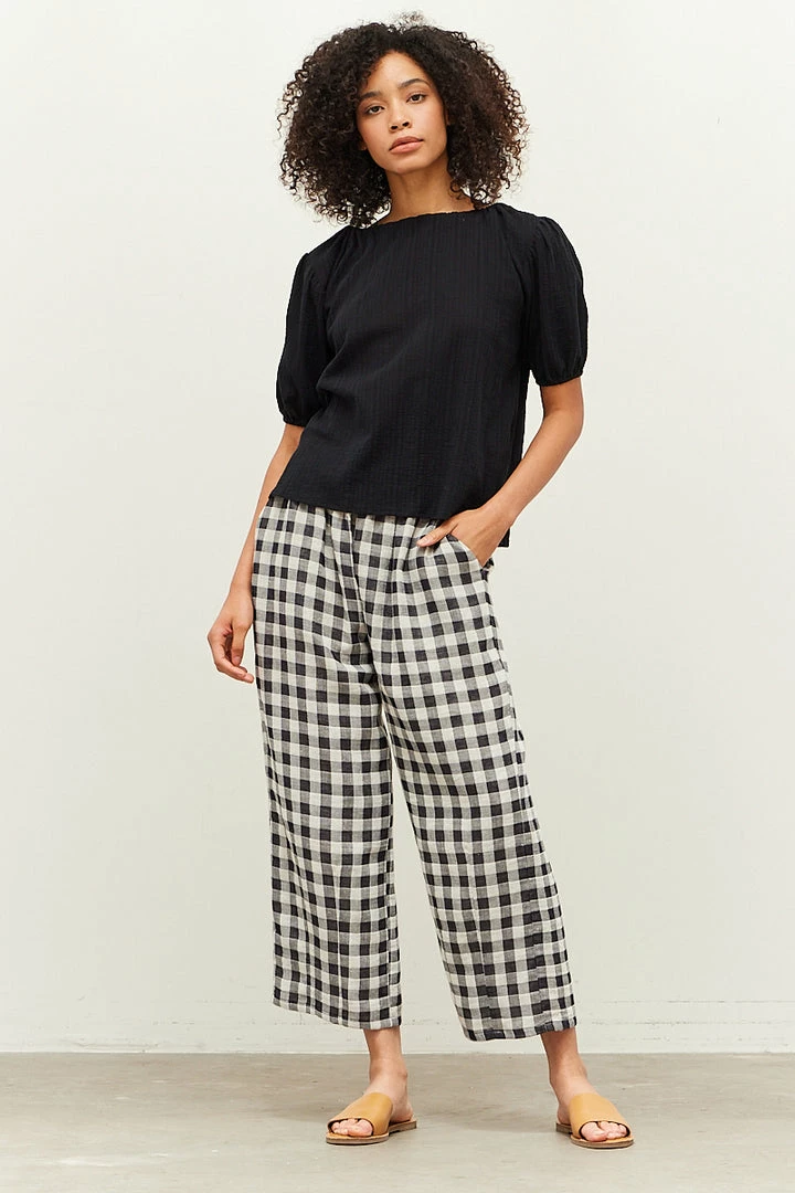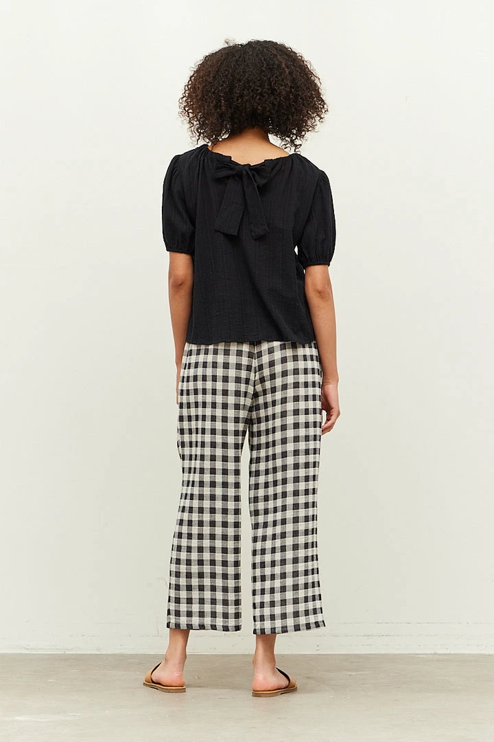 Grade & Gather Women’s Black Back Tie Puff Sleeve Blouse