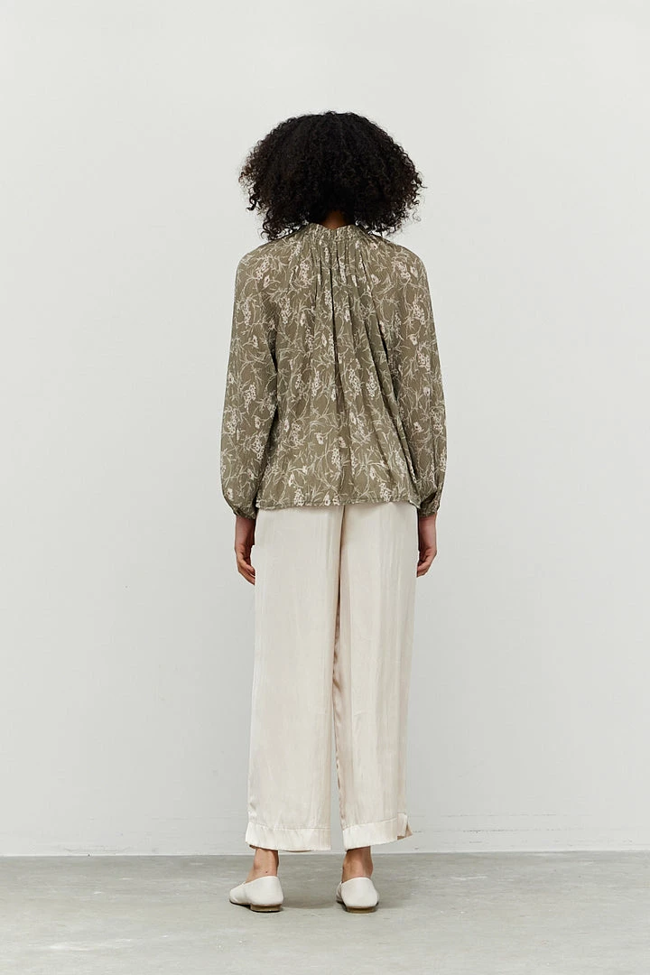 Grade & Gather Women’s Dry Thyme Pleat Floral Mock Neck Blouse