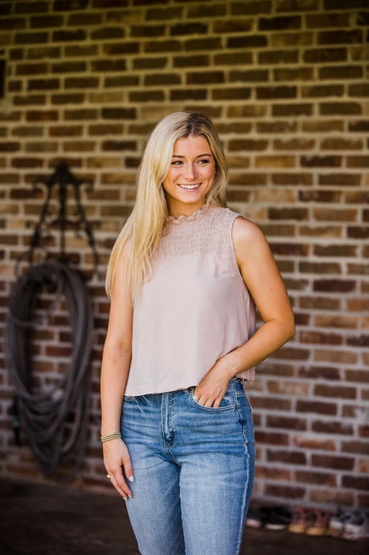 Grade & Gather Women's Smocked Neck Jersey Petal Top
