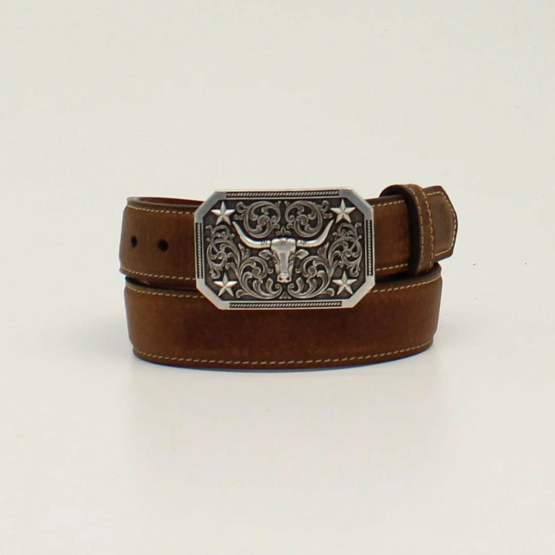M & F Belts Boys 3D 1 1/4″ Brown Long Horn Buckle