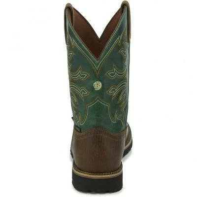 A hardworking waterproof boot with handsome, rugged flair. The 11″ Aransas boot in Tan from the George Strait Collection for Justin® features an oil-resisting rubber outsole and waterproof construction to stand up to the toughest working conditions. Inside, the King Comfort System insole provides superior comfort and support throughout a long, hard day’s work. The turquoise accent stitch and signature logo provide a bold shot of color.