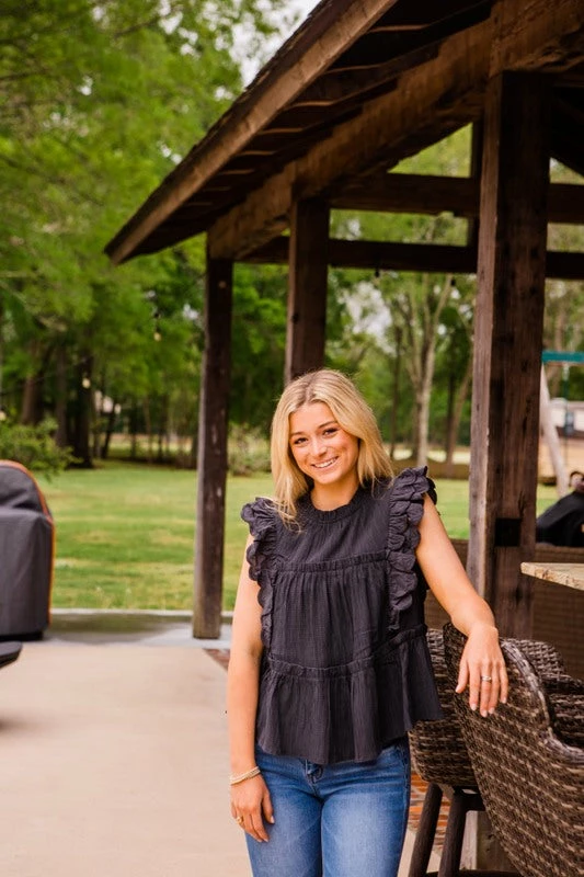 &Merci Tops Women’s Woven Lace Castor Grey Sleevless Top