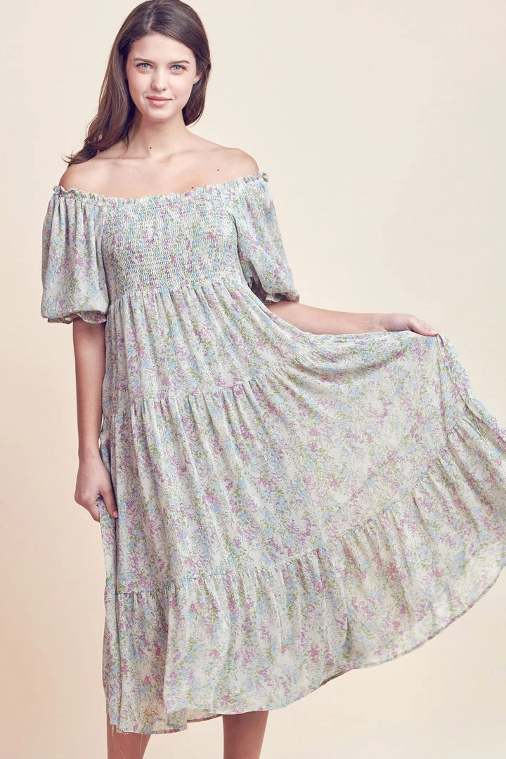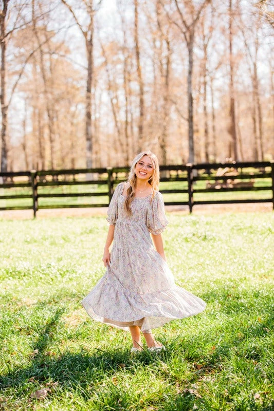 &Merci Women’s Cream Floral Print Puff Sleeve