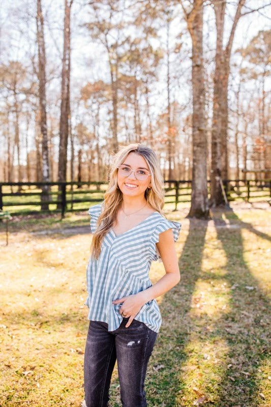 &Merci Women’s Dusty Turquoise Gingham Print Ruffle Sleeve