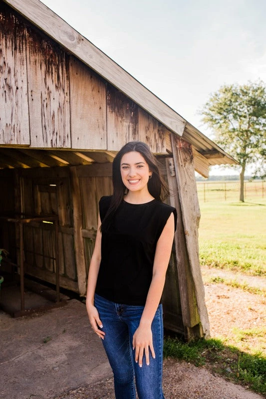 She And Sky Women's Black Sleeveless Padded Shoulder Top