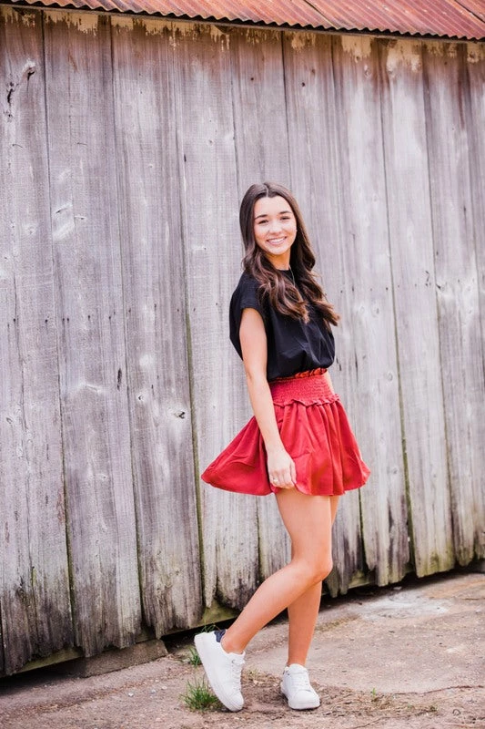She And Sky Women’s Brick Woven Satin Skirt W/Smocked Waist Band