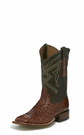 Description:The 12″ Lemuel boot from our Exotics collection combines handsome flair with rugged charm. The rich Hunter Green leather shaft is a natural match for the beautiful Brandy Hermoso full-quill ostrich foot. Inside, the cushion comfort package ensures a comfortable environment for the foot. It’s finished with a leather sole, narrow square toe and a 1 3/8″ walking heel with spur ledge.ย This style is proudly Made in the USA with global parts.ย